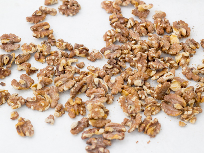 1. Préchauffer le four à 350℉. Rôtir les noix de Grenoble sur une plaque à biscuits de 10 à 12 minutes. Retirer du four et laisser tempérer complètement.