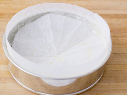 2. Graisser un moule à charnière de 9 pouces et recouvrir de papier parchemin dans le fond et sur les côtés.