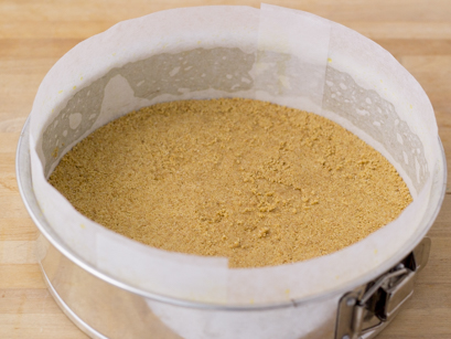 3. Dans un grand bol, combiner la chapelure de biscuits Graham, le Sucre Granulé Redpath®, le sel et le beurre. Déposer dans le moule et presser légèrement. Cuire pendant cinq minutes.